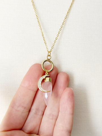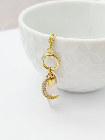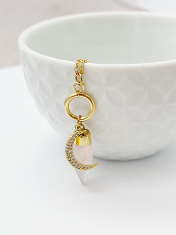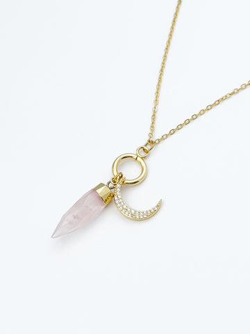 Rose Quartz Moon Necklace